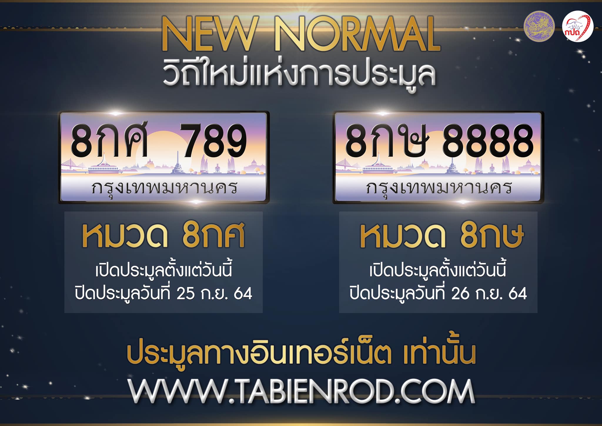 ประมูลทะเบียนรถ ใหม่อีกรอบ หมวด 8กศ และ 8กษ ในวันที่ 25 – 26 กันยายน 64