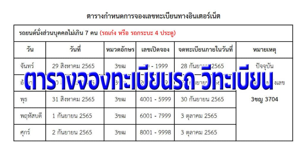 - ตารางจองทะเบียนรถมอเตอร์ไซค์