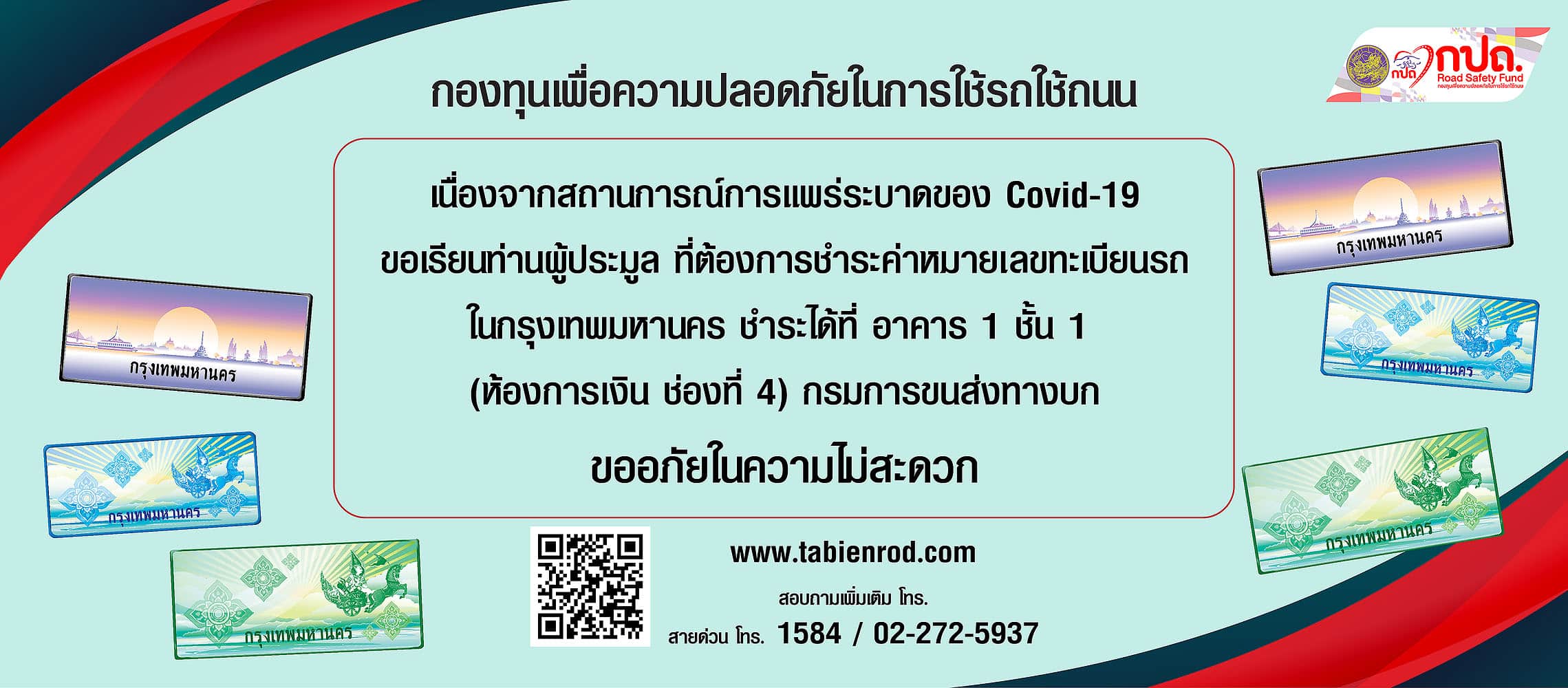 วิธีชำระค่าหมายเลขทะเบียนรถ กรุงเทพ ชำระได้ที่ กรมการขนส่งทางบก อาคาร 1 ชั้น 1